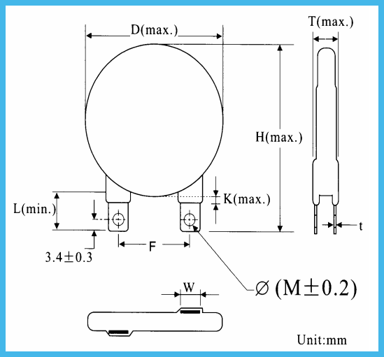 | Distance from Varistor | 2mm (min.) |